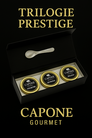 Notre collection Coffrets & Cadeaux Gourmets réunit les produits les plus prestigieux de Capone Gourmet : cartes-cadeaux dorées, trilogies de caviar, cuillères en nacre, accessoires gourmet, planches à découper, couteaux, casquettes exclusives et assortiments gourmets prêts à offrir.